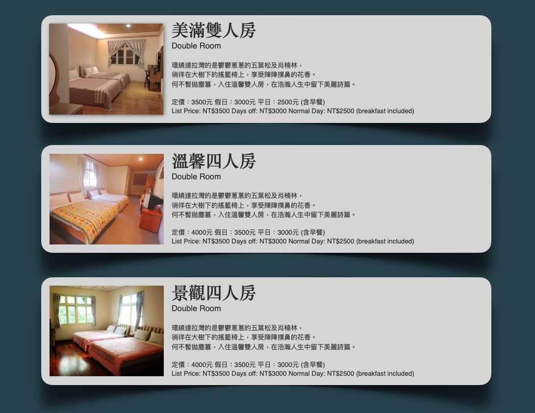 *預約訂房者需於三日內預付房價30%。